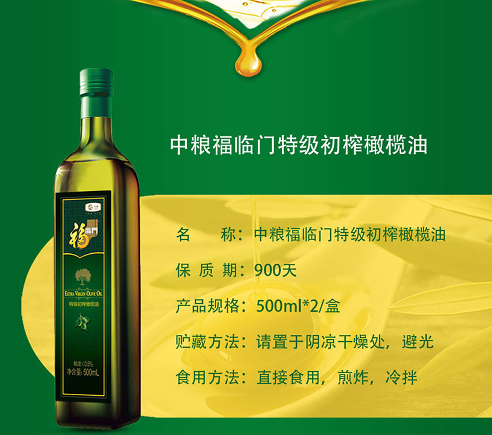 商品名称:中粮福临门特级初榨橄榄油礼盒500ml*2瓶