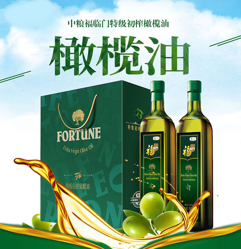 中粮福临门特级初榨橄榄油礼盒500ml*2瓶