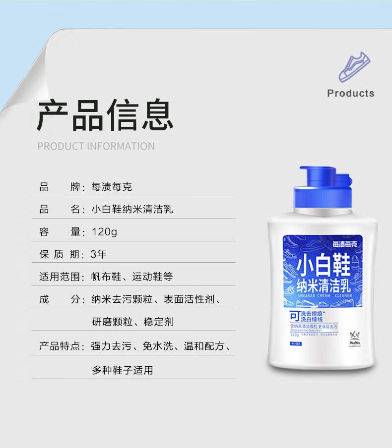商品名称:MAZMAC/每渍每克小白鞋纳米清洁乳120g*3瓶