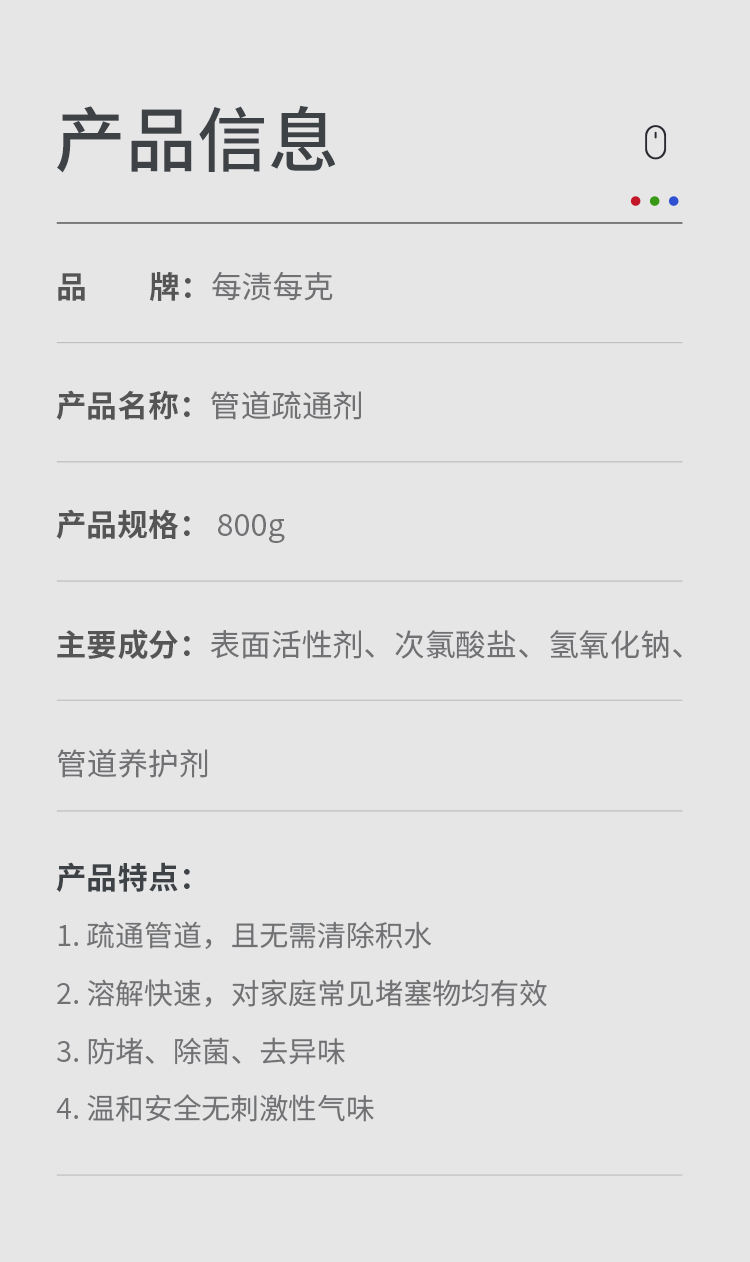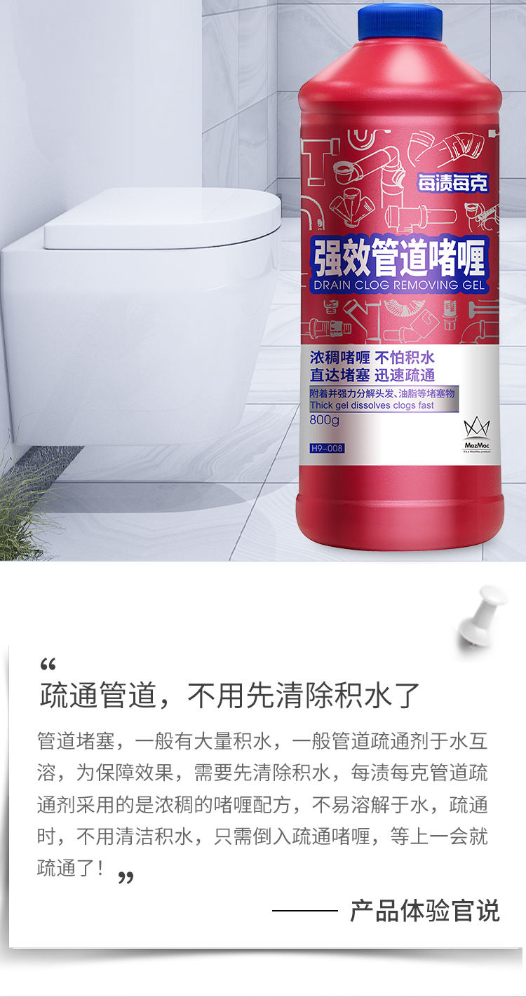 商品名称:MAZMAC/每渍每克强力管道疏通啫喱800g*2瓶