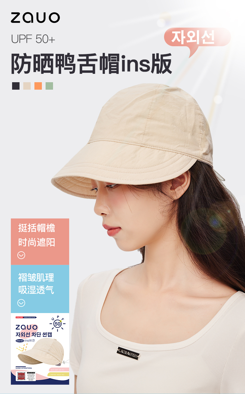 zauo防晒鸭舌帽ins版