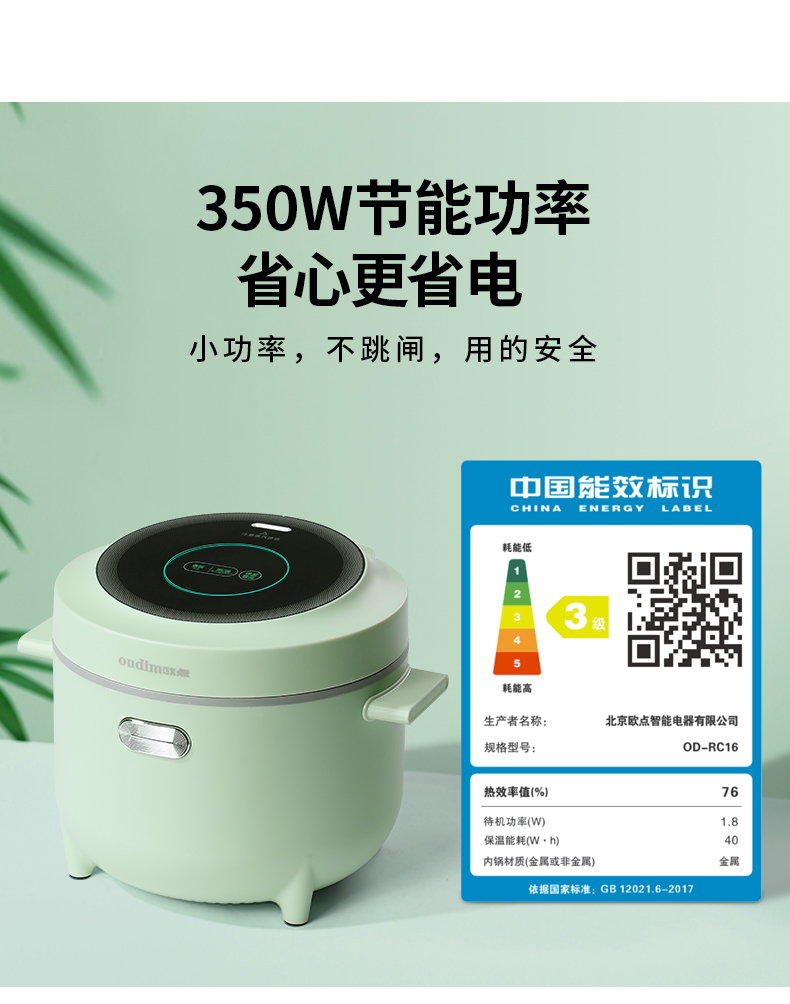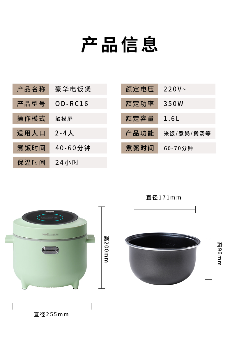 商品名称:oudim/欧点1.6升豪华迷你电饭煲OD-RC16