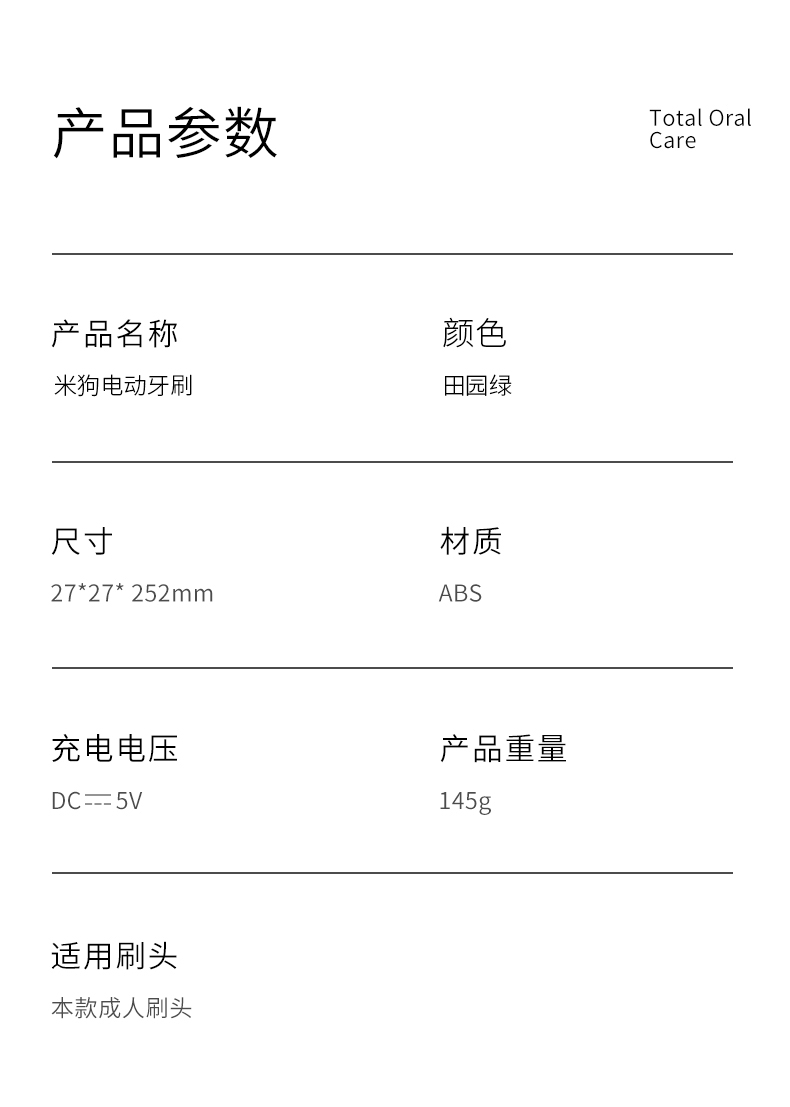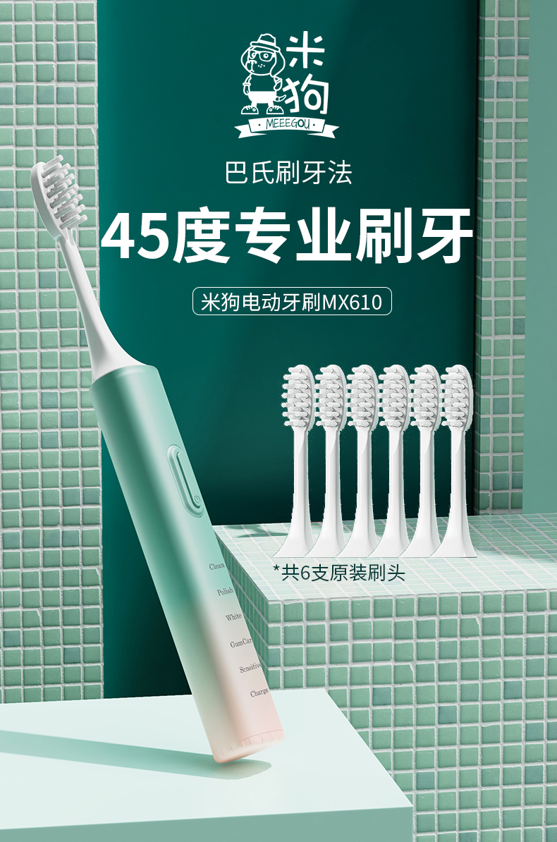 商品名称:MEEEGOU/米狗声波电动牙刷-田园绿MX610