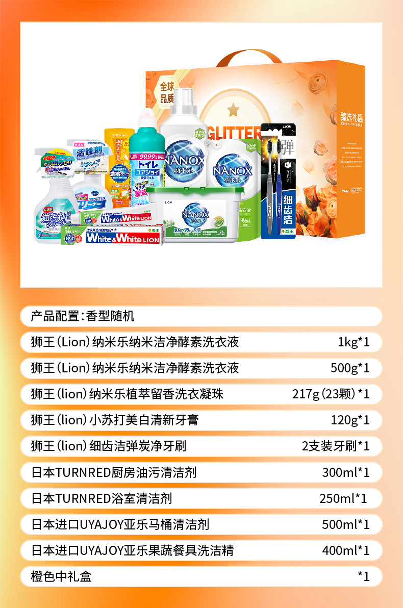 商品名称:Lion/狮王家庭洁净九件套SW-24714