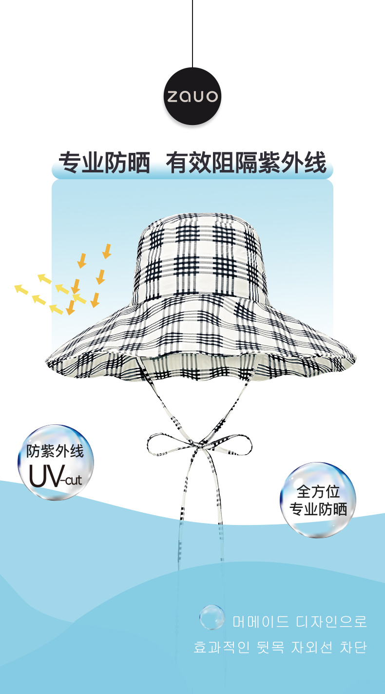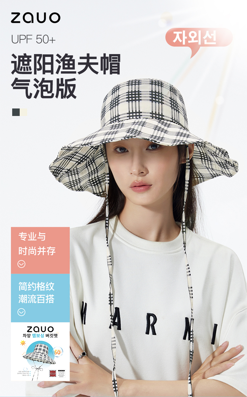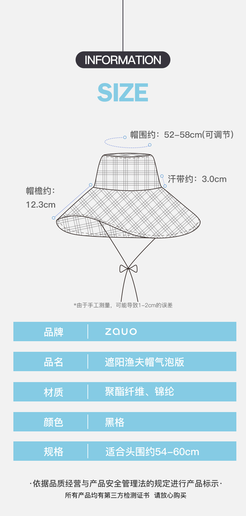 商品名称:zauo遮阳渔夫帽气泡版-黑格