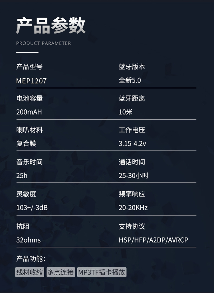 商品名称:MEEEGOU/米狗运动蓝牙耳机MEP1207