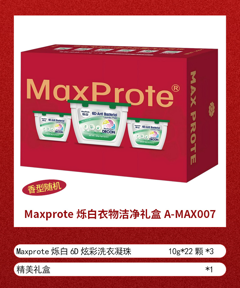 商品名称:Maxprote/烁白6D炫彩洗衣凝珠礼盒10g*22颗*3盒