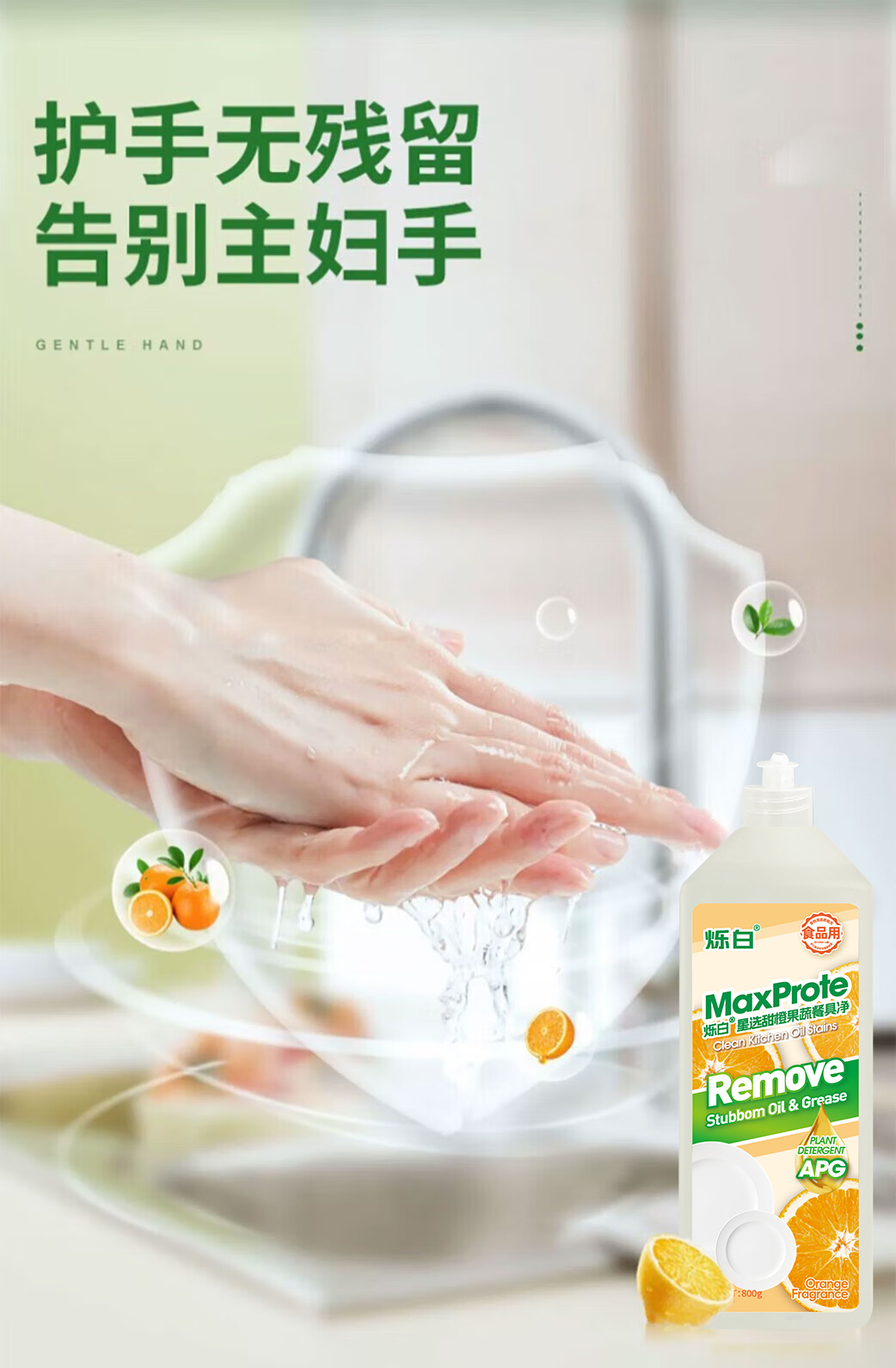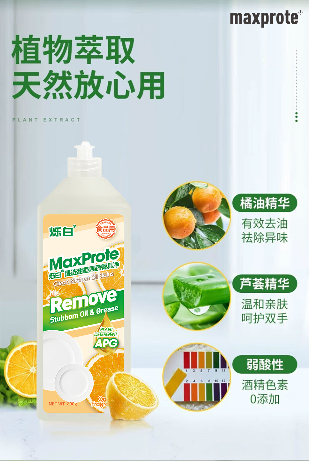 商品名称:Maxprote/烁白星选甜橙果蔬餐具净800g*3瓶MA41115