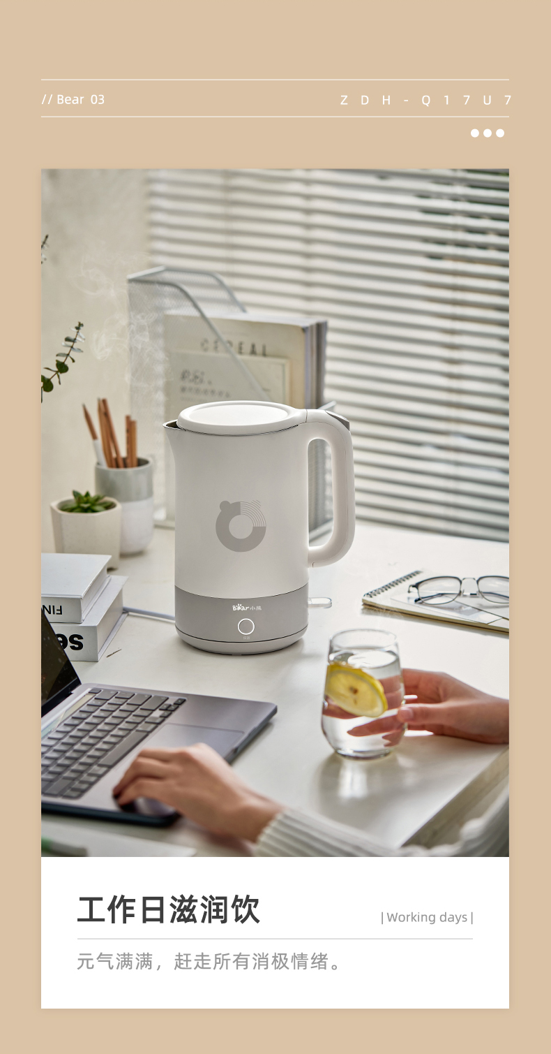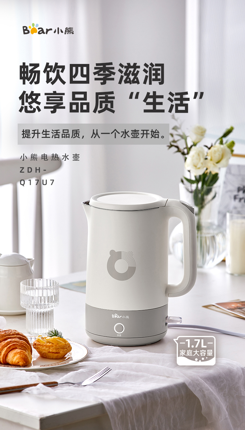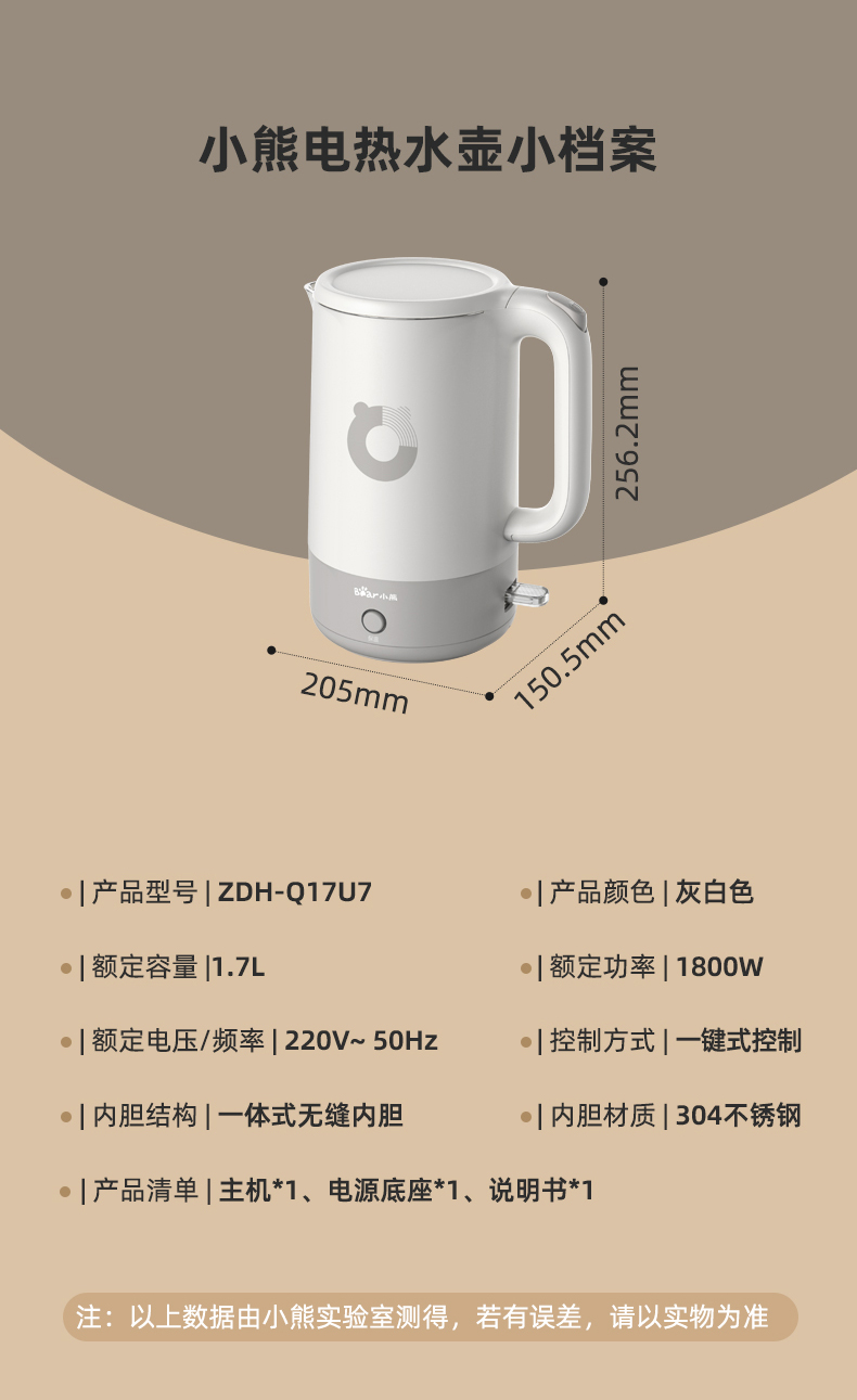 商品名称:Bear/小熊1.7升电水壶-灰白色ZDH-Q17U7