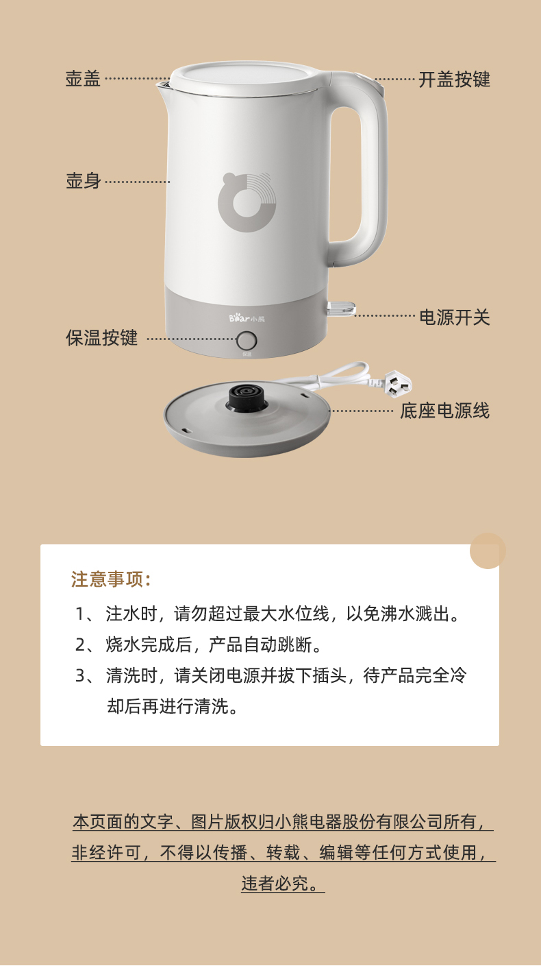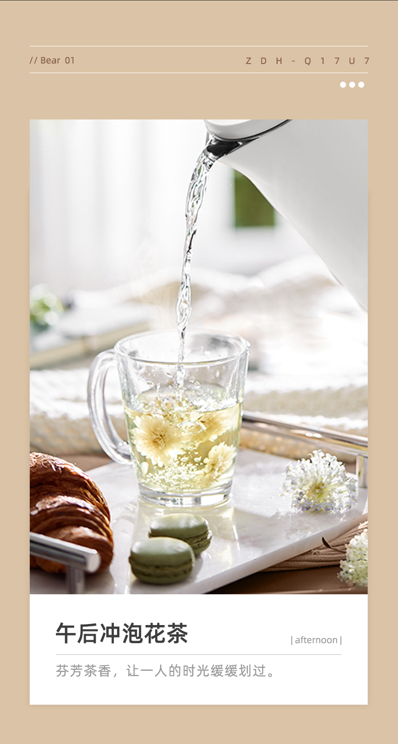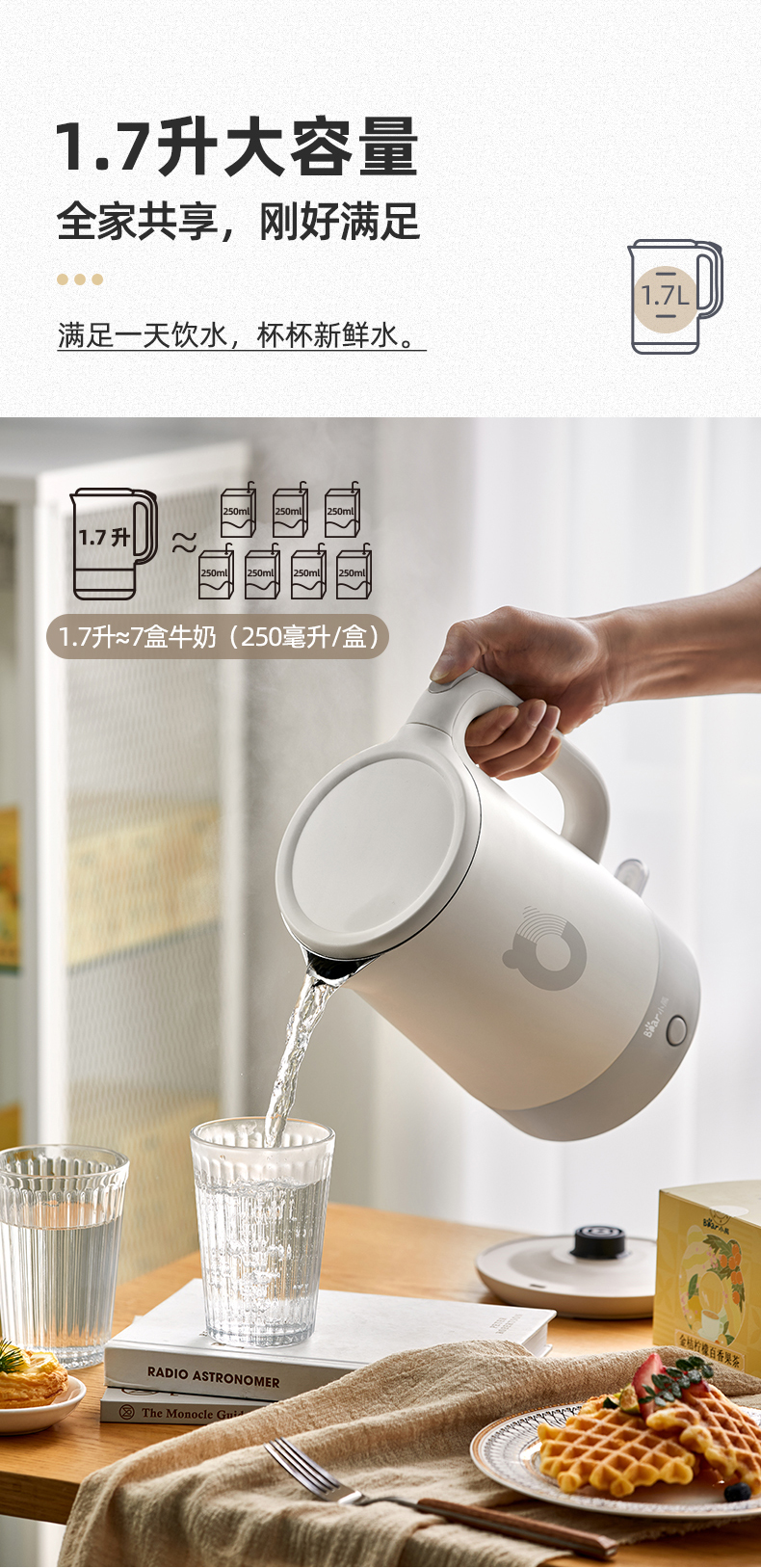 商品名称:Bear/小熊1.7升电水壶-灰白色ZDH-Q17U7