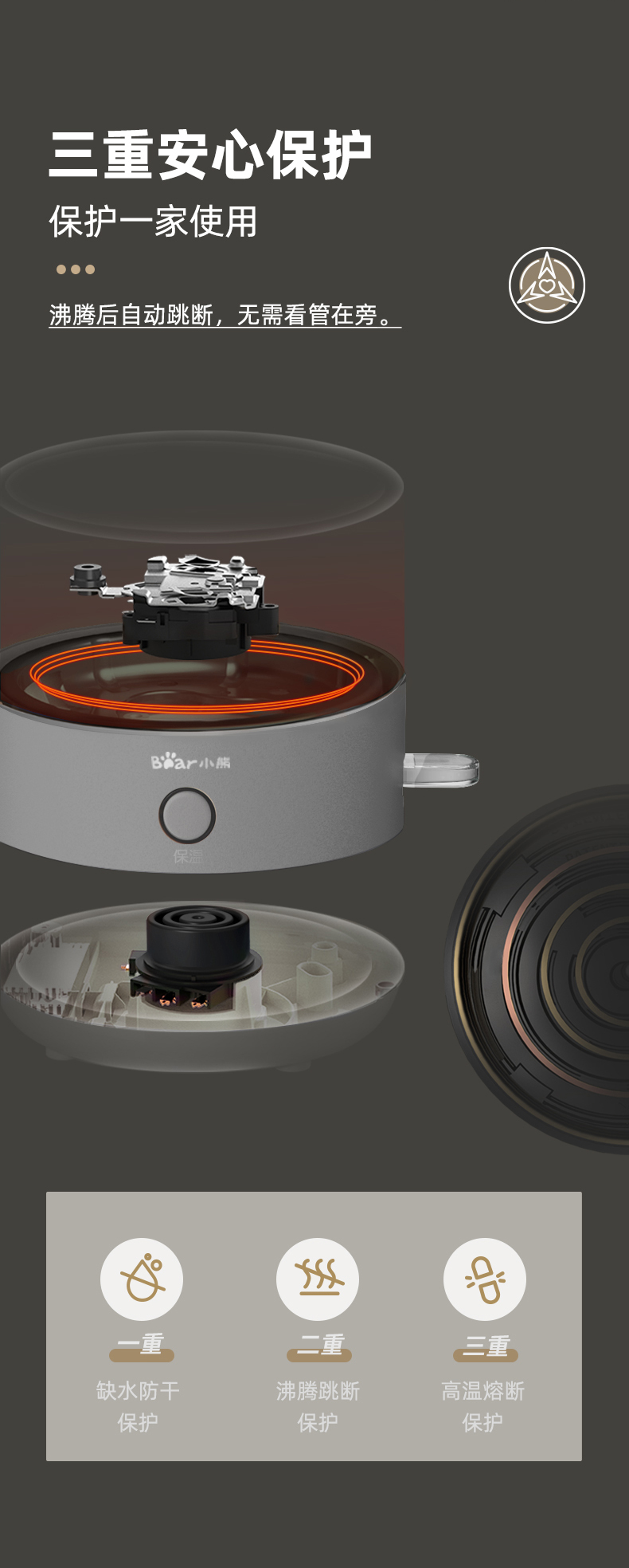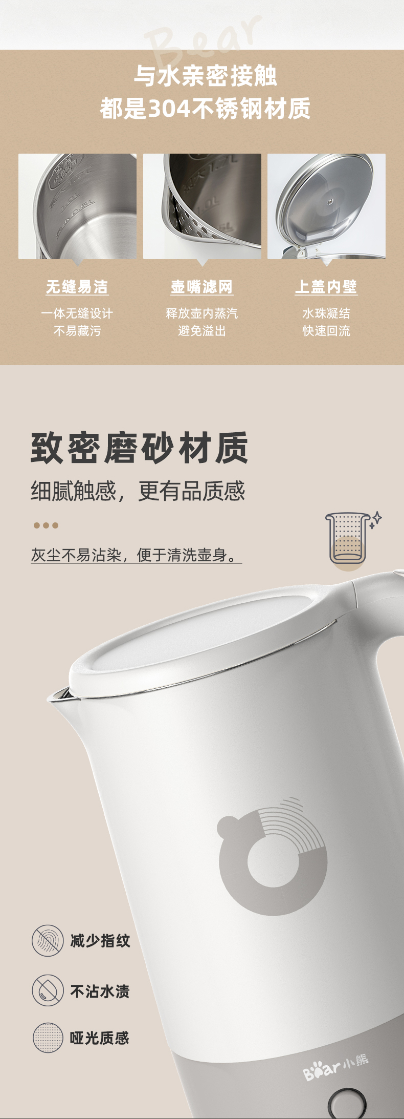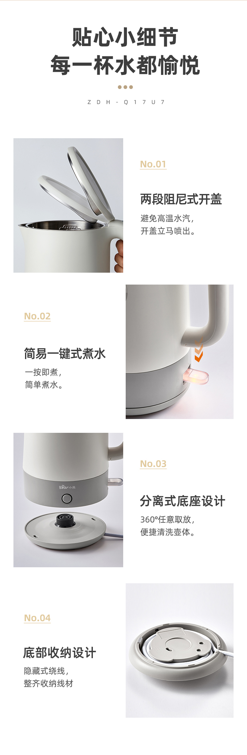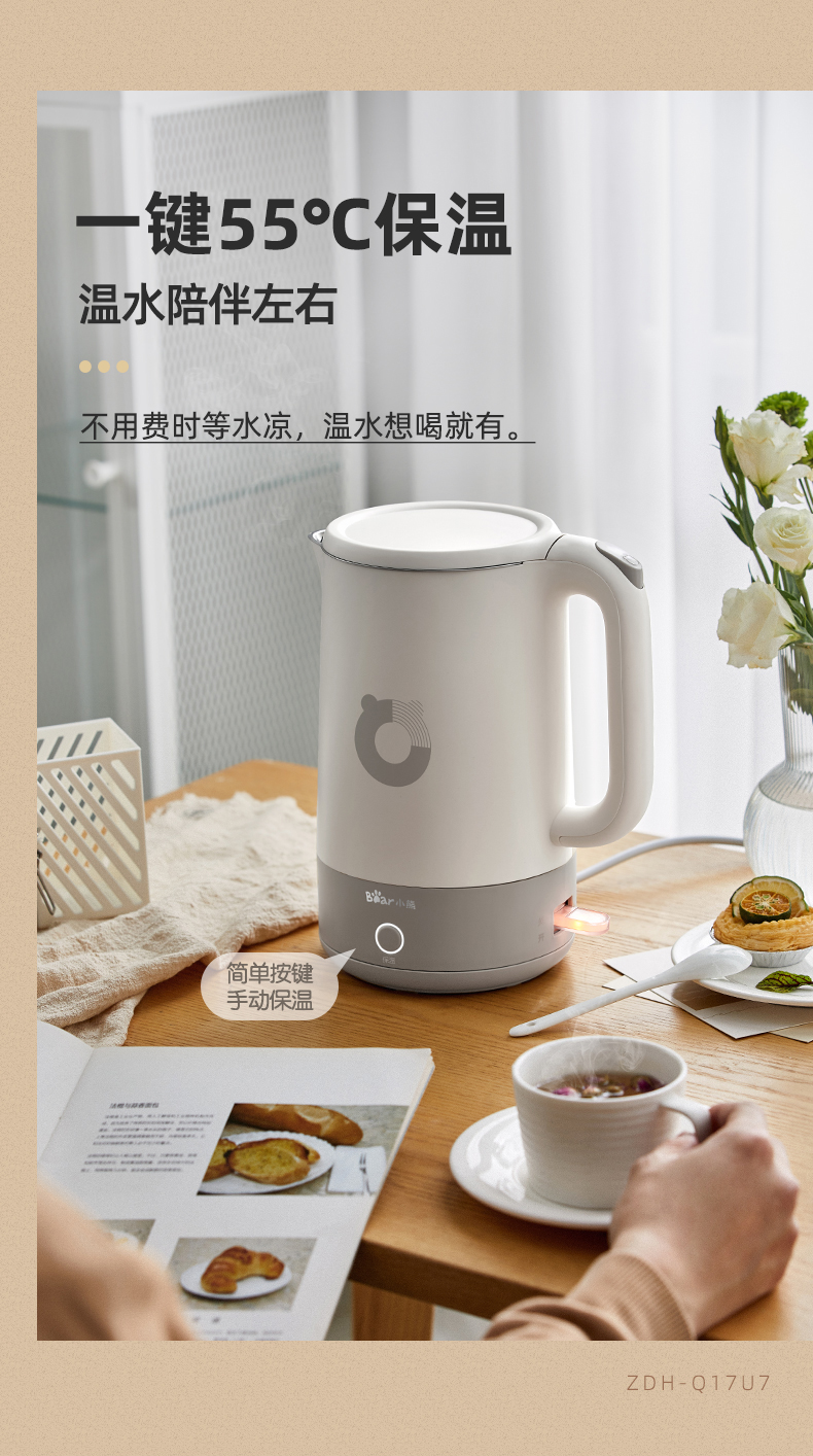 Bear/小熊1.7升电水壶-灰白色ZDH-Q17U7