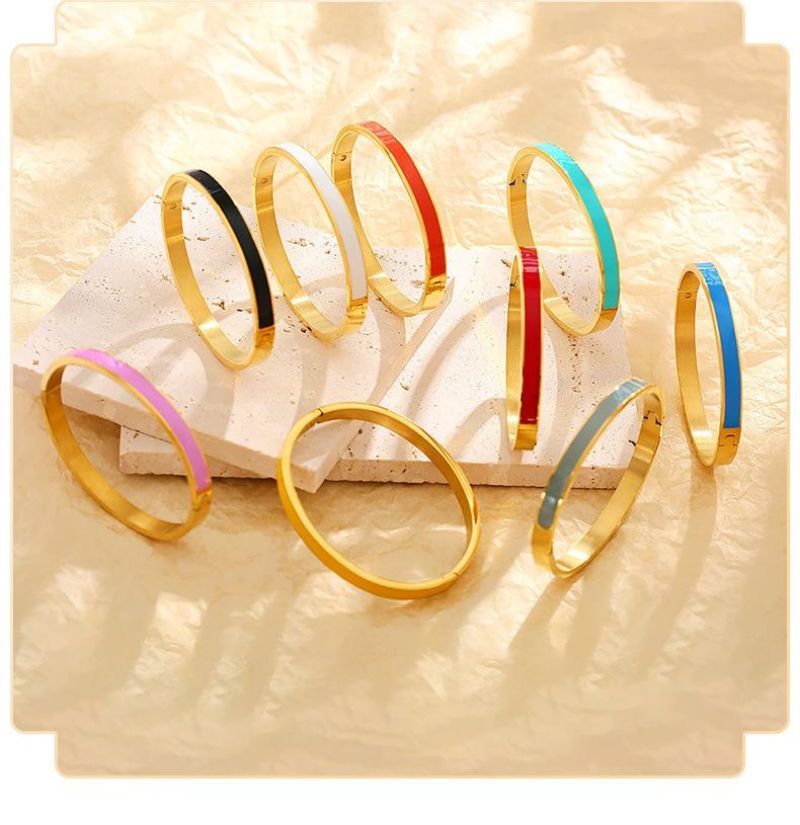 奥贝米AOBEIMI滴胶手镯女金色手环 保色ins时尚钛钢手镯AOBEIMI-B101