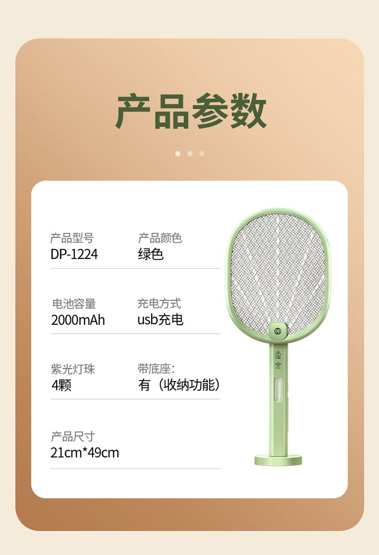 商品名称:DP/久量充电式二合一电蚊拍DP-1224