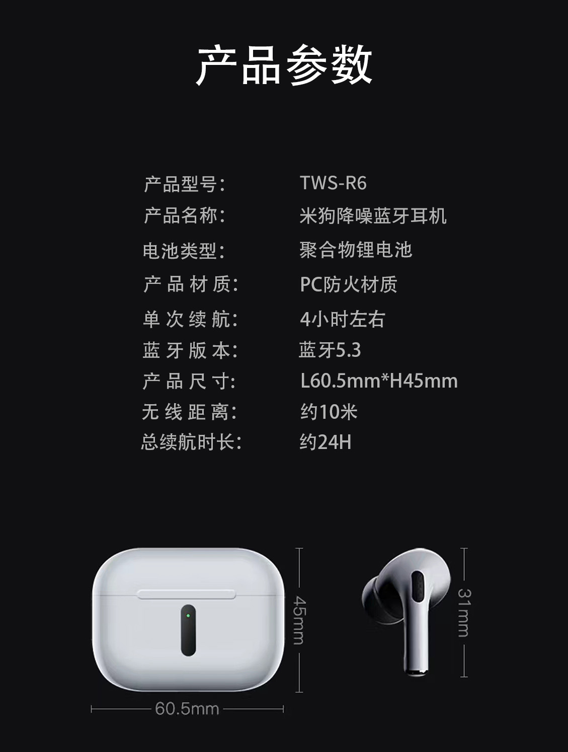 商品名称:MEEEGOU/米狗降噪蓝牙耳机TWS-R6