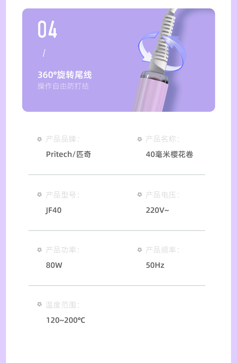 商品名称:PRITECH/匹奇40毫米樱花卷发棒JF40