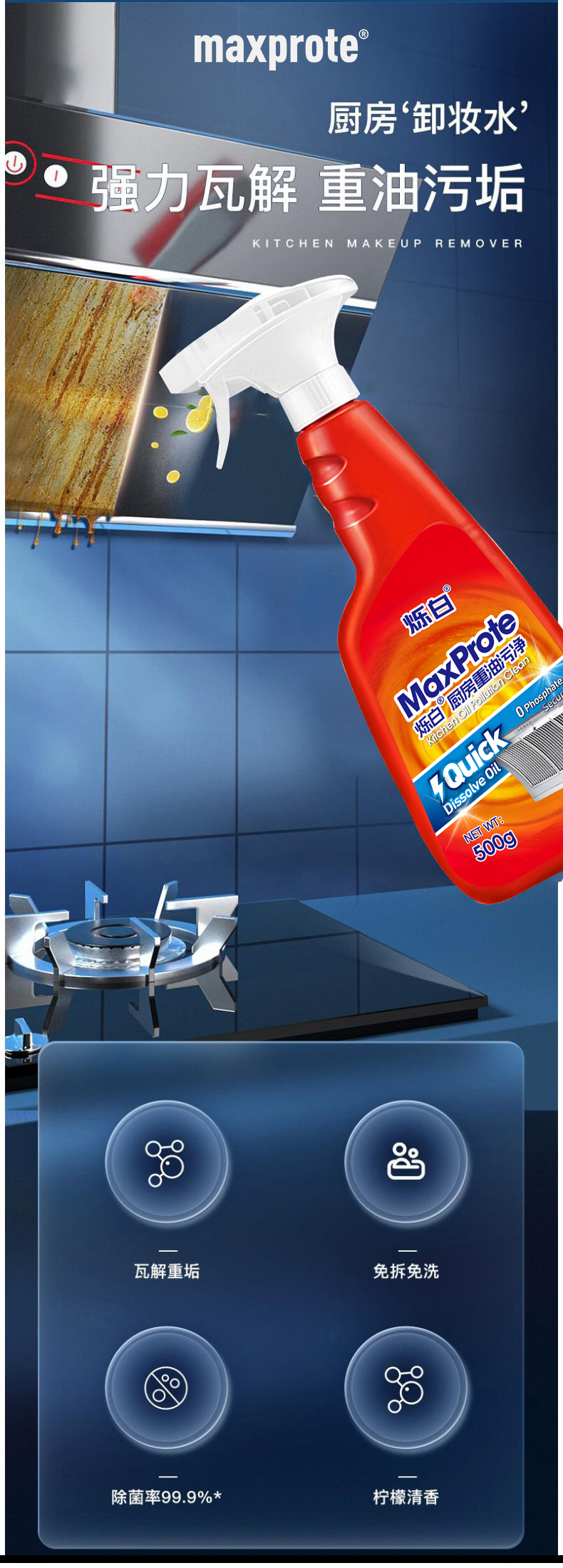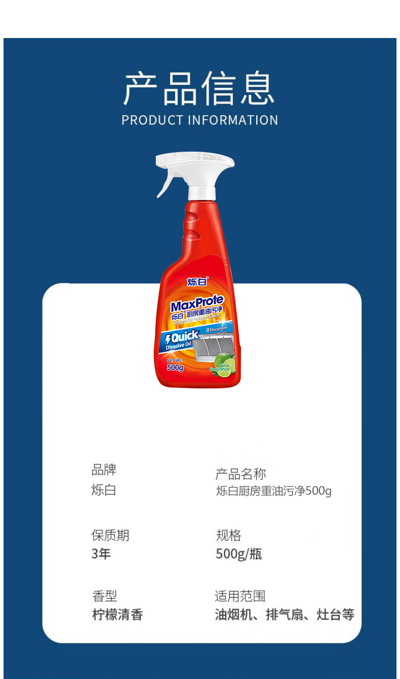 商品名称:Maxprote/烁白厨房重油污净500g*3瓶MA41118