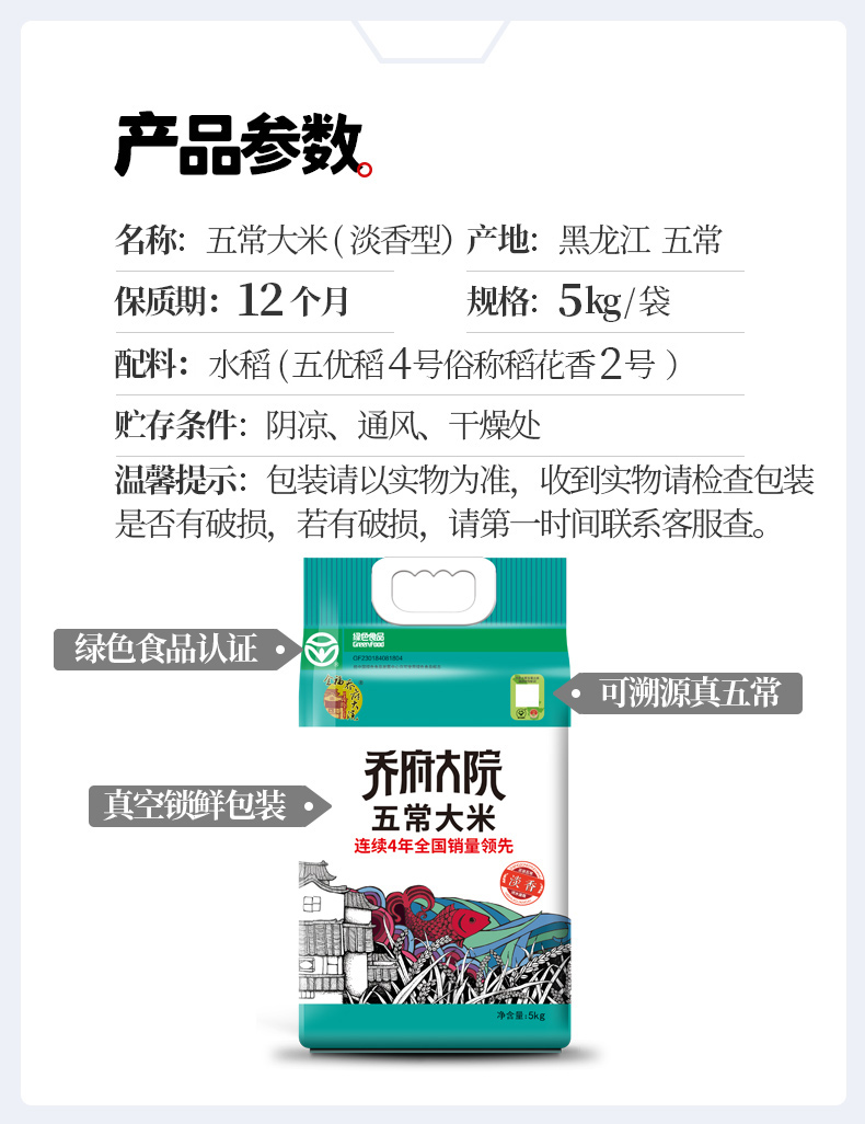 商品名称:乔府大院五常大米-淡香5kg