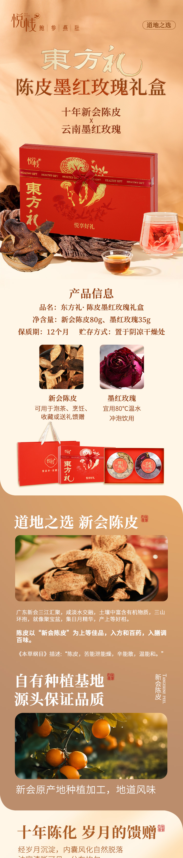 商品名称:YUEZHAN/悦栈东方礼陈皮墨红玫瑰礼盒115g