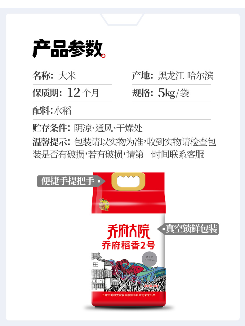 商品名称:乔府大院乔府稻香2号大米-红袋5kg