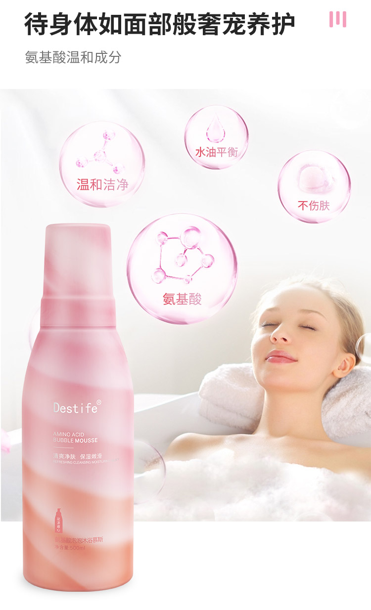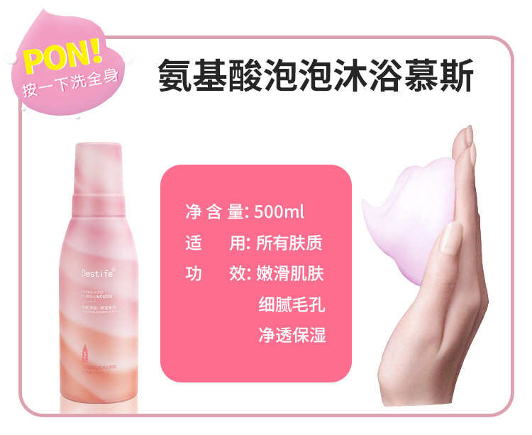 商品名称:Destife/黛丝媞芙沐浴露500ml*2瓶 氨基酸泡泡沐浴慕斯