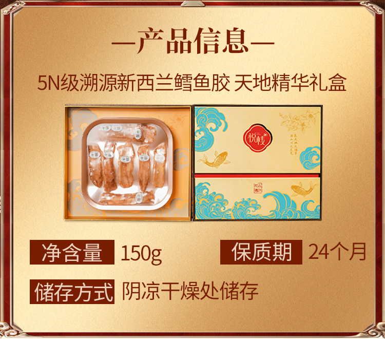 商品名称:YUEZHAN/悦栈5N级新西兰鳕鱼胶天地精华礼盒150g
