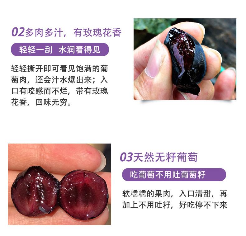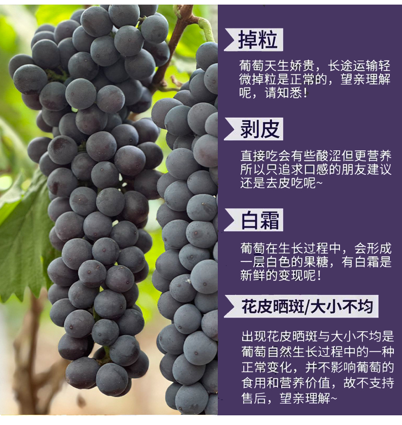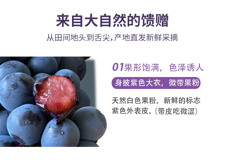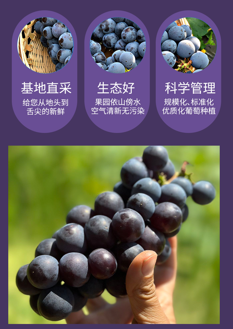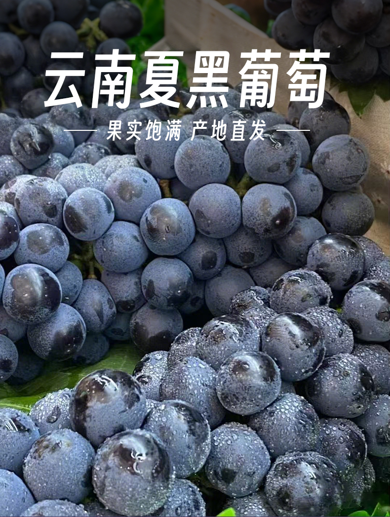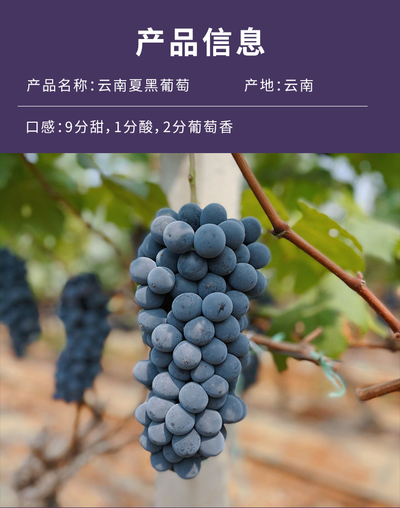 商品名称:【顺丰配送】食欲跳动云南夏黑葡萄彩箱装 3斤约2-3串