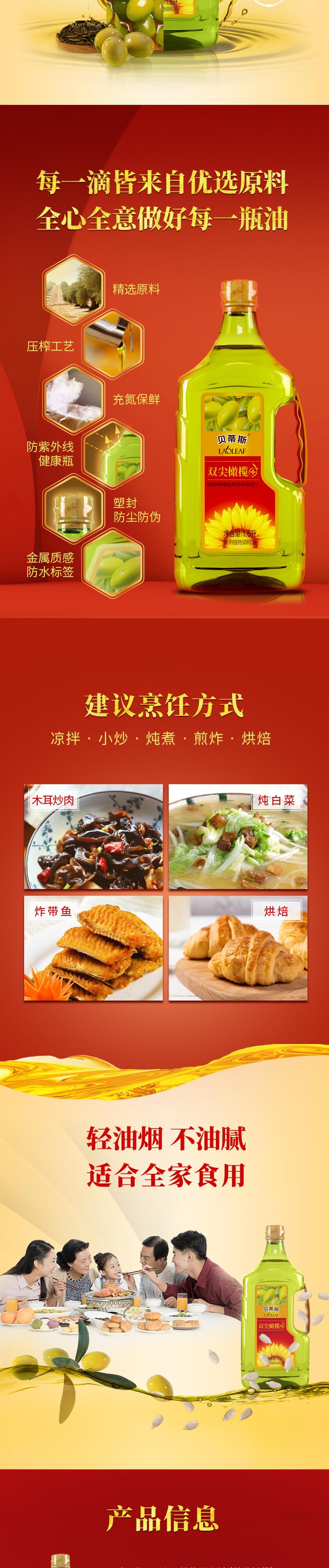 商品名称:BETIS/贝蒂斯双尖橄榄葵花橄榄食用植物调和油1.6L