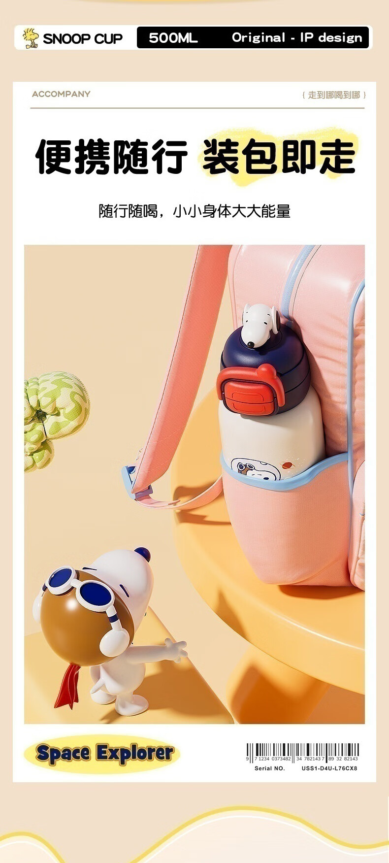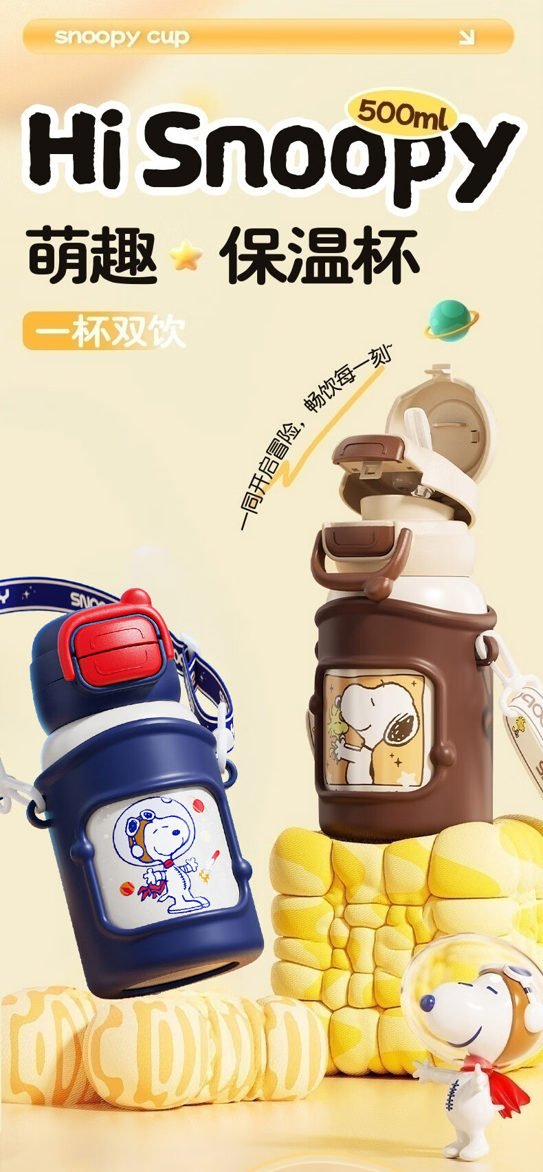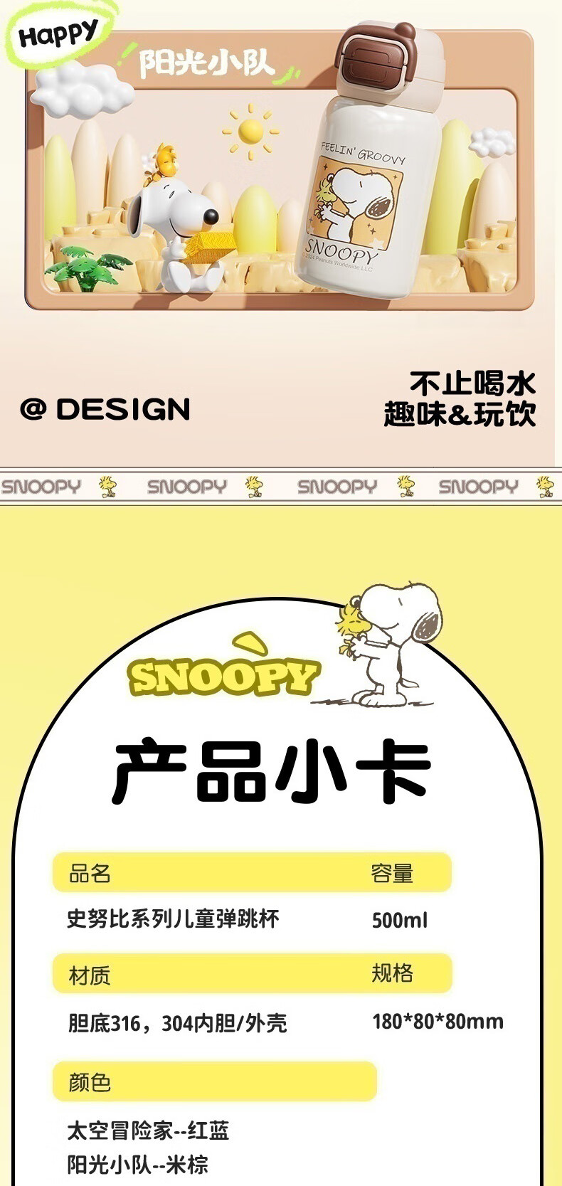 商品名称:SNOOPY/史努比系列500毫升儿童弹跳保温杯SXH005