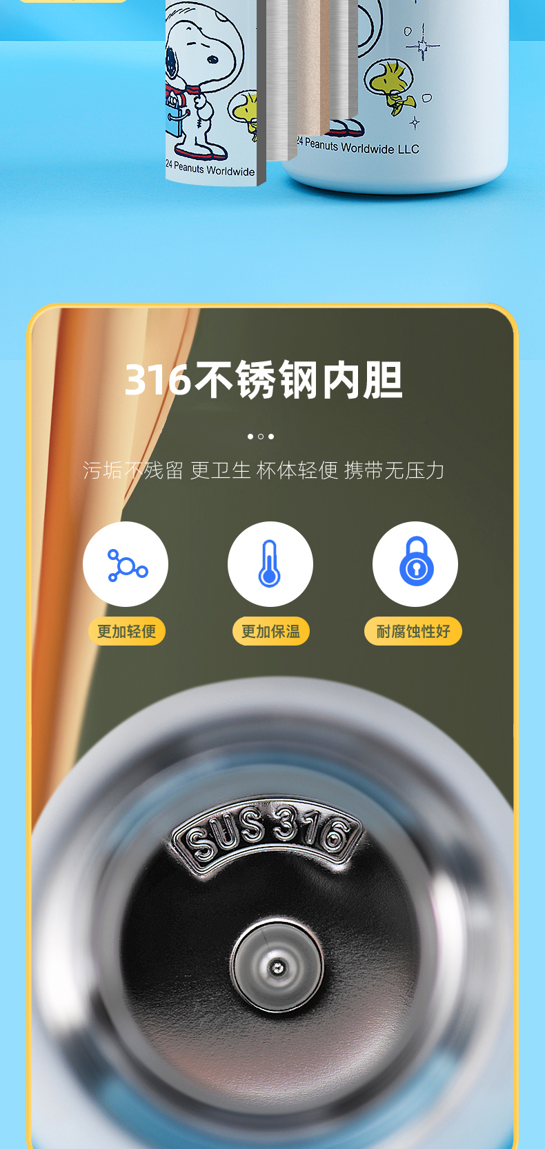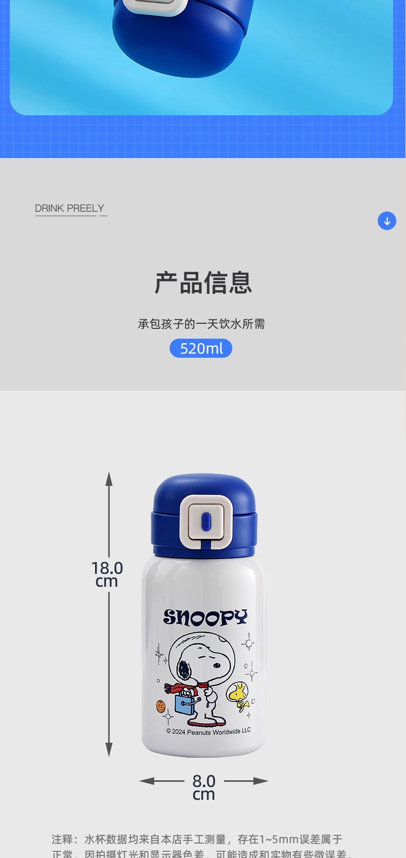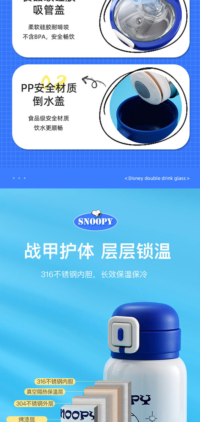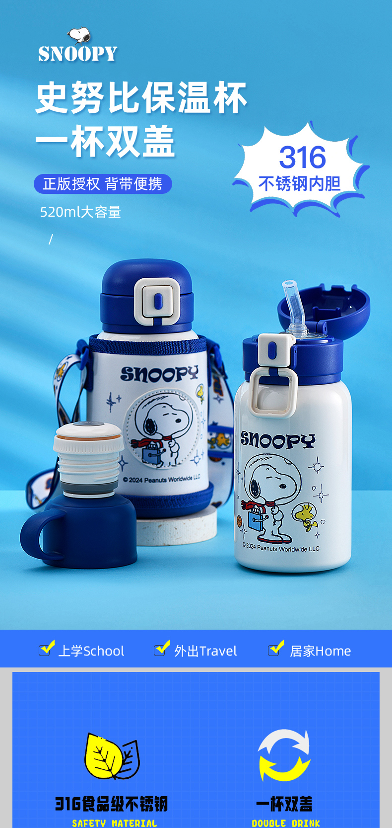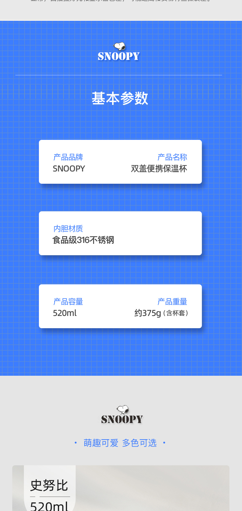 商品名称:SNOOPY/史努比520毫升双盖便携保温杯SXH002