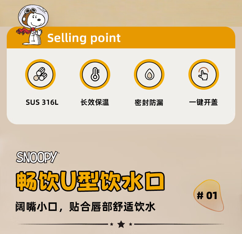 商品名称:SNOOPY/史努比480毫升儿童卡通直饮保温杯SNP7248