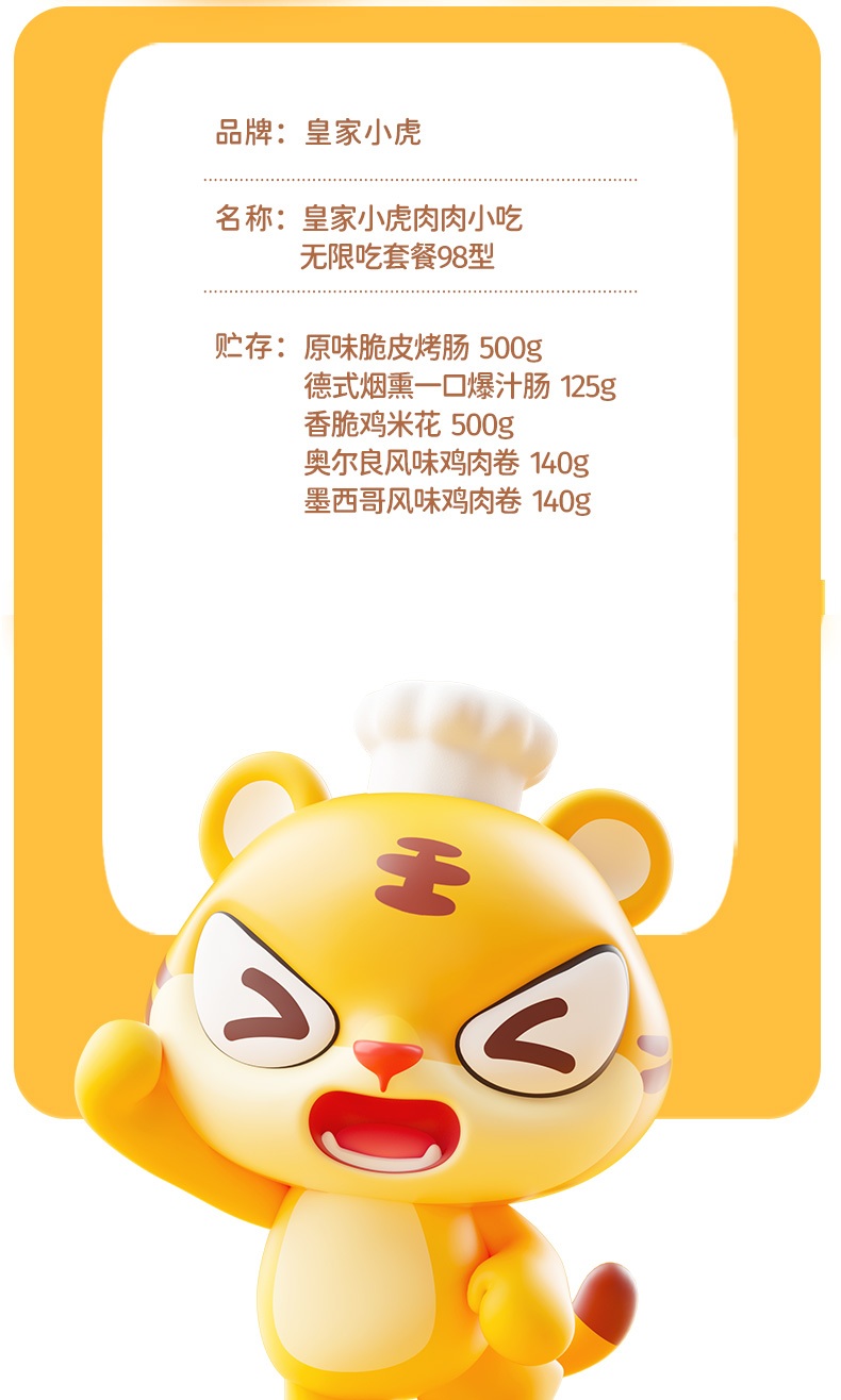 商品名称:【顺丰配送】皇家小虎肉肉无限吃烤肠组合98型1405g