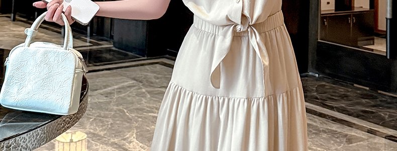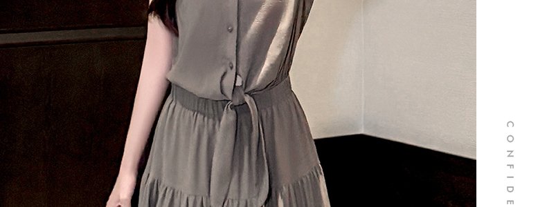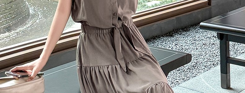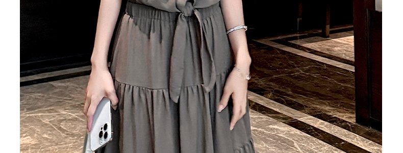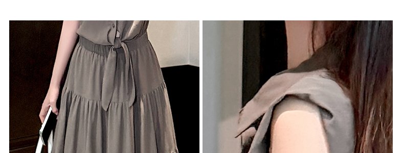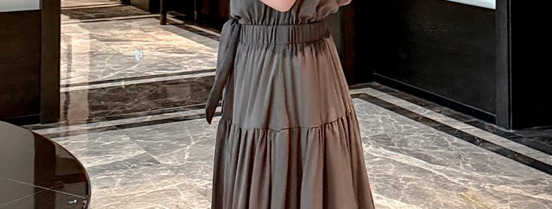 商品名称:MASHLUXY 假两件显瘦设计感轻奢连衣裙 咖啡色 M码