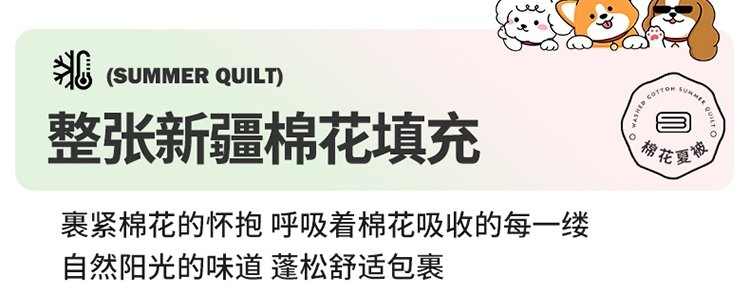 商品名称:豆豆羊家纺 A类新疆棉花夏凉被1.5m*2m 爱心狗