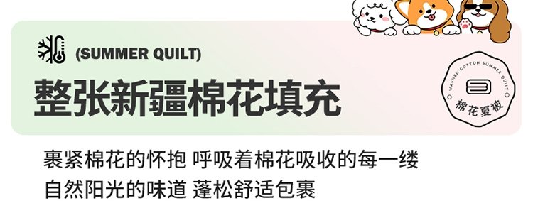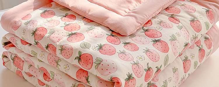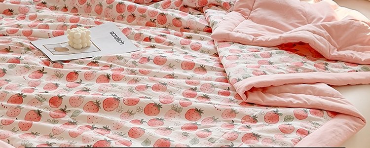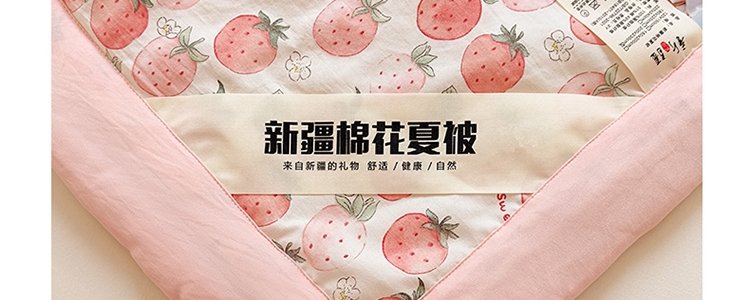 商品名称:豆豆羊家纺 A类新疆棉花夏凉被1.5m*2m 草莓