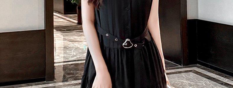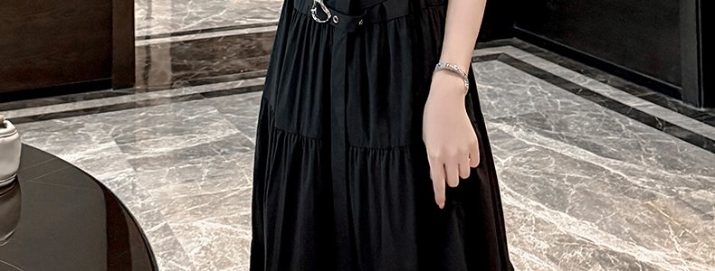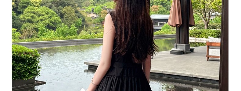 商品名称:MASHLUXY 无袖高腰大裙摆赫本风连衣裙 黑色 XL码