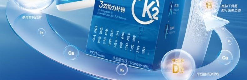 汤臣倍健(BYHEALTH) 钙维生素D+维生素K软胶囊 100粒*2瓶装