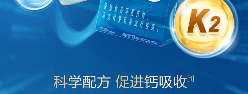 商品名称:汤臣倍健(BYHEALTH) 钙维生素D+维生素K软胶囊 100粒*2瓶装
