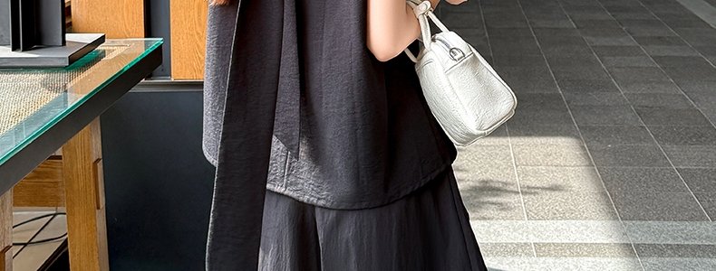 商品名称:MASHLUXY 无袖飘带轻奢洋气夏季薄款衬衫 黑色 S码