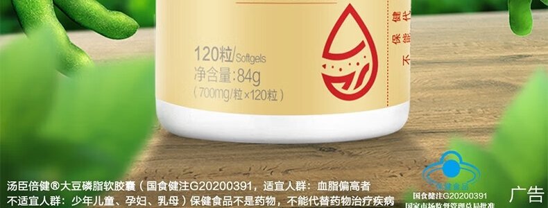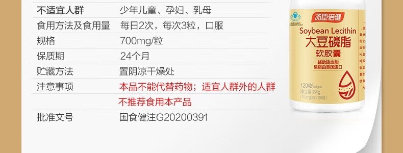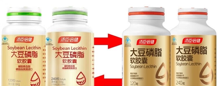 商品名称:汤臣倍健(BYHEALTH) 大豆磷脂软胶囊 120粒*2瓶+维生素C30片*1瓶