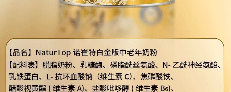 商品名称:澳洲 诺崔特(Natur Top)白金版高钙乳铁蛋白中老年牛奶粉 800g/罐