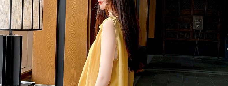 MASHLUXY 无袖宽松苎麻衬衫 黄色 M码
