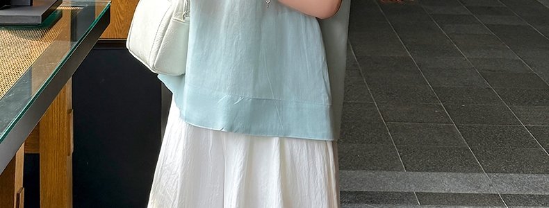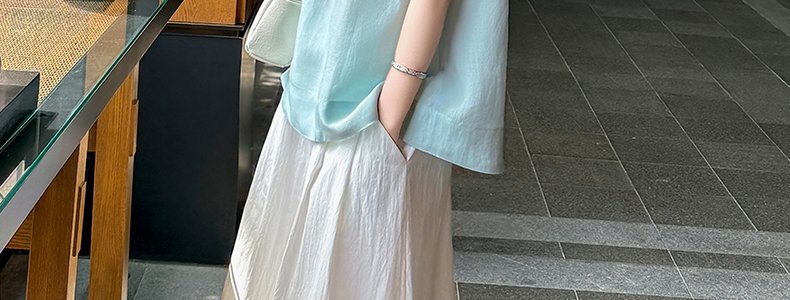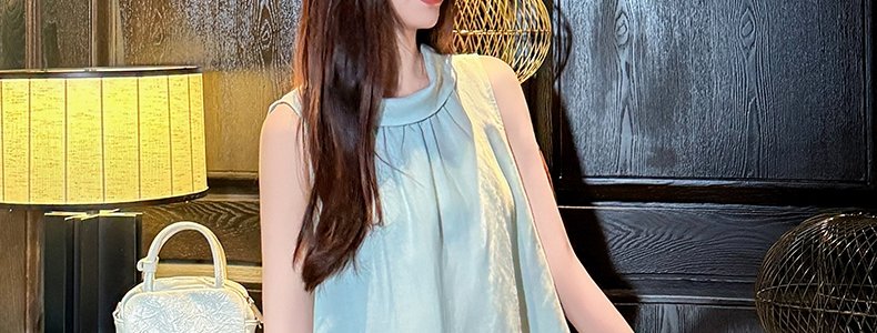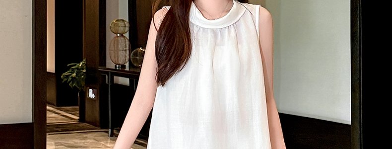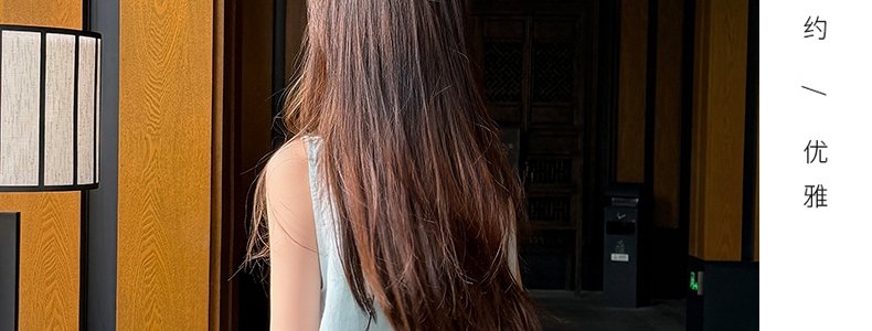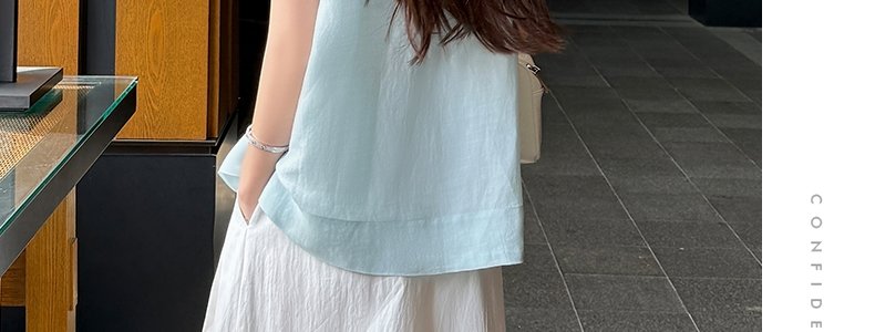 商品名称:MASHLUXY 无袖宽松苎麻衬衫 蓝色 XL码
