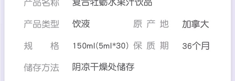 商品名称:加拿大 童年故事(Child Story)复合牡蛎水果汁饮品液体锌150ml(5ml*30条)