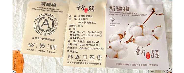 商品名称:豆豆羊家纺 A类新疆棉花夏凉被1.5m*2m 许愿猫
