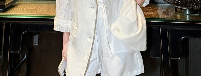 MASHLUXY 七分袖韩式风薄款西装外套 白色 M码
