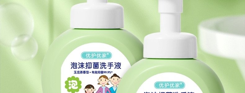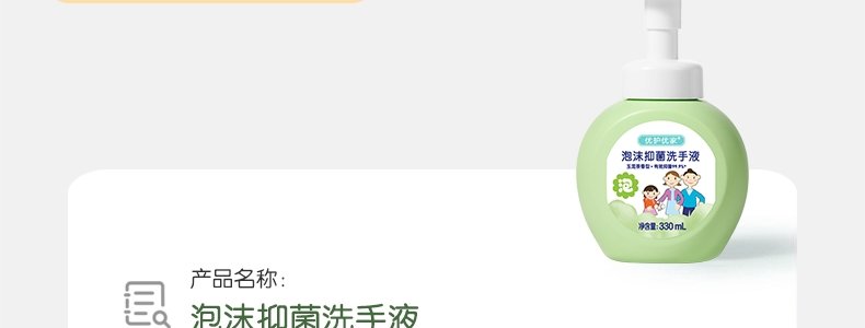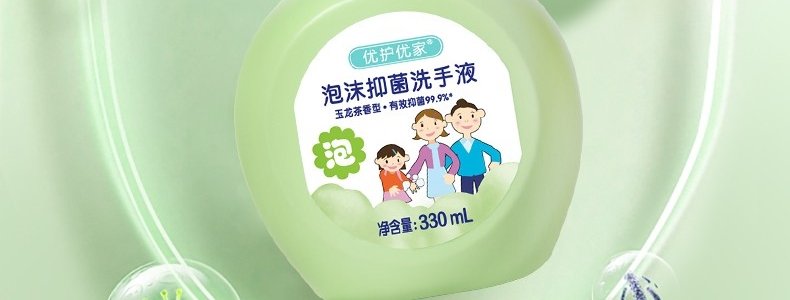 商品名称:优护优家 泡沫抑菌洗手液(玉龙茶香型)330ml/瓶