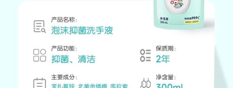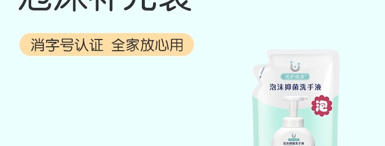 商品名称:优护优家 泡沫抑菌洗手液补充装(柠檬香型)300ML*2袋