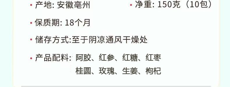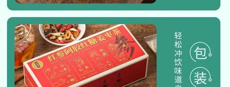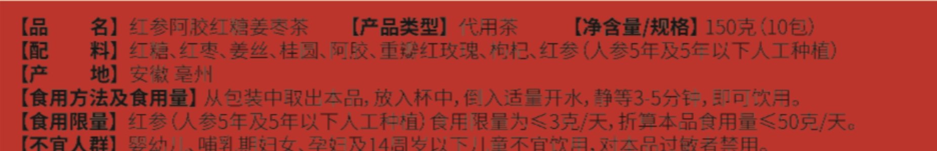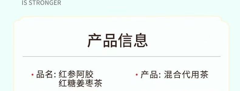商品名称:淳滋堂 红参阿胶红糖姜枣茶 150克*3盒(10包/盒)