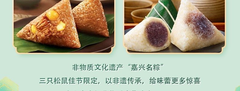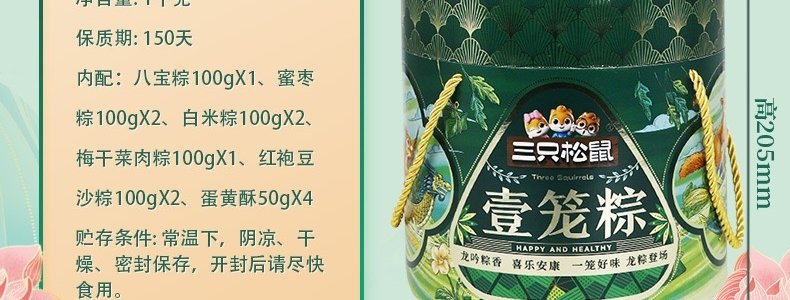 商品名称:三只松鼠 粽子礼盒单层壹笼粽 1kg (粽子8个+蛋黄酥4个)
