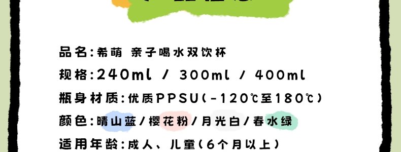 商品名称:希萌 (SIMO) 亲子喝水双饮杯 240ML (春水绿